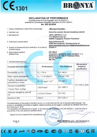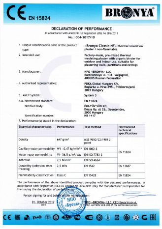 Сертификат СЕ на Броня Фасад НГ в Европейской лаборатории по стандарту EN 15824