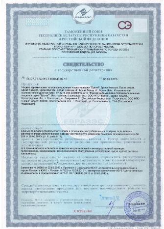 Европейское санитарно-эпидемиологическое заключение на все модификации теплоизоляции Броня, включая НГ