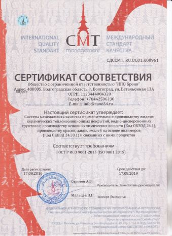 Сверхтонкая теплоизоляция «БРОНЯ» и ее производство сертифицировано в системе ИСО 9001:2015 и могут применяться в России без ограничений.